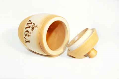 Бочонок сделан из цельной липы, обработан внутри натуральным пчелиным воском. Полностью натуральное сырьё, в отличие от пластика и стекла, полностью передает естественный аромат продукта, не выделяет вредных веществ при длительном хранении. Идеально, красиво и экологично для хранения мёда, варенья, джема и др.