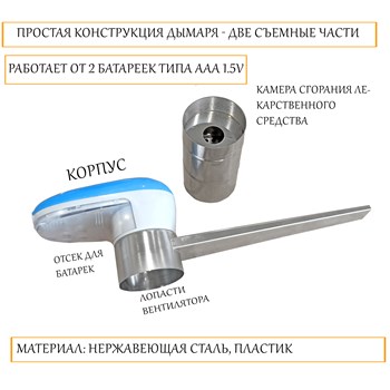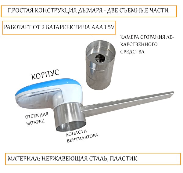 В зависимости от партии товара - в комплектацию может также входить шнур с вилкой для работы с дымарём от сети 220 В.