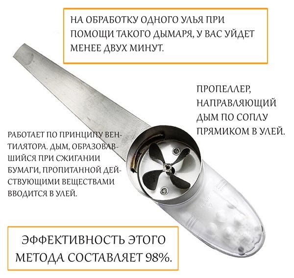 VARROJET - это электрический дымарь, используемый для борьбы с клещами varroa. Работает по принципу вентилятора. Дым, образовавшийся при сжигании бумаги, пропитанной действующими веществами вводится в улей. В зависимости от силы пчелиной семьи, 1-3 капли 12-20% амитраза наносится на фольгу или бумагу. Пропитанная действующим веществом и высушенная бумага помещается в камеру сгорания устройства, далее варроаджет вставляют в леток и приводят в действие электронный механизм. Через 5-10 секунд вся фольга/бумага прогорает, и лечебный дым проникает в улей. Эффективность этого метода составляет 98%. Применяется в августе, после последней откачки меда. Окуривание выполняется не менее трех раз, но не более пяти. Интервал времени между первым и последующими окуриваниями составляет 6 дней. Таким образом, лечение пчел проводится на всех стадиях их развития. Летки не нужно закрывать. Если леток закрыт, не более 10 минут. Помимо осеннего лечения, можно выполнить еще одну в январе, при минимальной дневной температуре в пределах 12-14 °С. Фольга или бумага должна быть само возгораемая. Для большей эффективности рекомендовано использование сетчатого дна с подложкой так как осыпавшийся на дно клещ, если он выжил, не сможет вернуться обратно к пчелам.