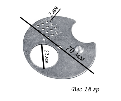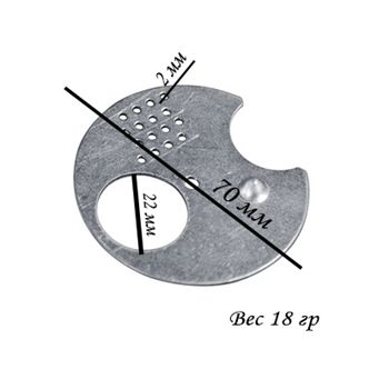 Заградитель верхнего летка пчелиного улья - это задвижка для ограничения размеров верхнего круглого летка улья. Заградитель крепится над летком через центральное отверстие шурупом или саморезом. Возможно использования 4 положения поворота летка для изменения размеров прохода пчел. Материал изготовления - оцинкованная сталь.