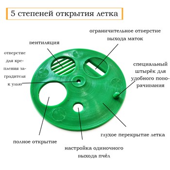 Заградитель для летка – это незаменимое приспособление на пасеке, которое пригодится во многих ситуациях. Оно помогает защитить пчел от внешней опасности, например, грызунов или химических испарений, а также сохранить в улье тепло, если возникнет такая необходимость. Эта модель очень удобна, так как она позволяет быстро изменить степень открытия летка. С ее помощью можно перекрыть леток наглухо, создать вентиляцию или полностью открыть, не снимая заградителя. Для этого нужно всего лишь повернуть приспособление, прокрутив его.