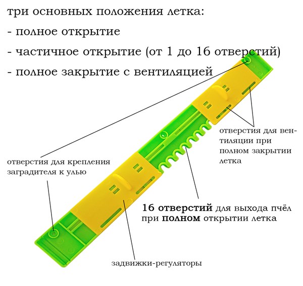 улей, что особенно важно в периоды высокой активности пчел. Регулируемый вход позволяет