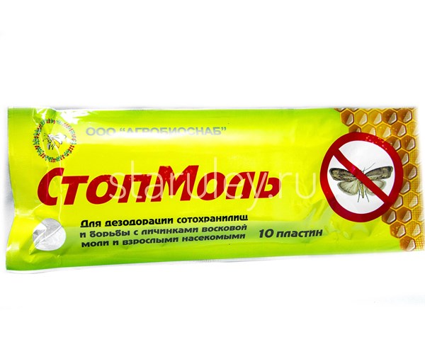 ОСОБЫЕ УКАЗАНИЯ: Открывать упаковку следует только па пасеке перед обработкой пчел. Соторамки, подвергнутые обработке препаратом СТОПМОЛЬ, используют весной на общих основаниях.