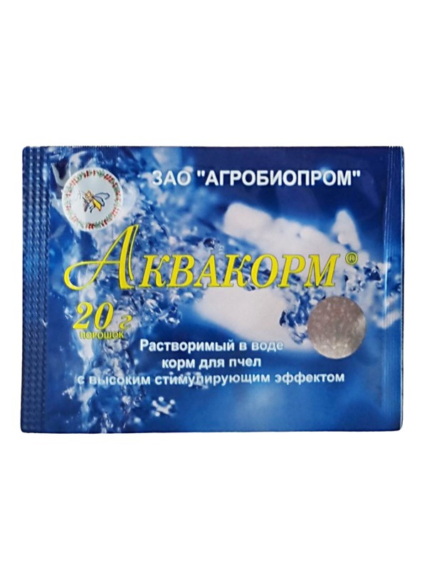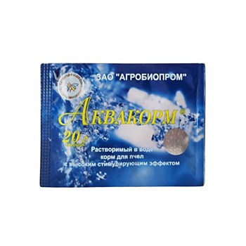 ФАРМАКОЛОГИЧЕСКОЕ ДЕЙСТВИЕ: Аквакорм — сбалансированный комплекс солей микроэлементов и витаминов. Стимулирует общее развитие и повышает активность пчелиных семей, активизирует яйцекладку маток и интенсивное выделение маточного и пчелиного молочка пчелами- кормилицами, улучшает зимовку пчел.