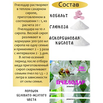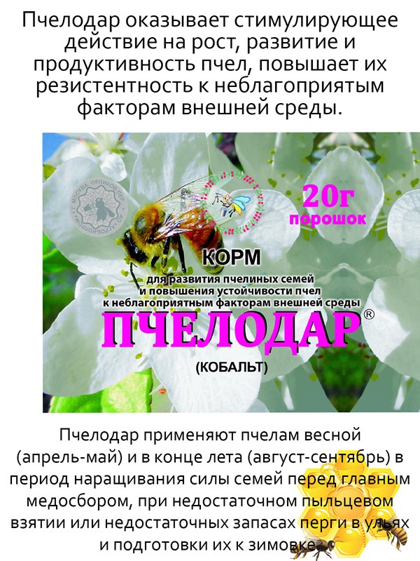 Пчелодар — это высококачественная кормовая добавка, специально разработанная для пчел. Она содержит комплекс витаминов, который способствует улучшению здоровья пчел и повышению их продуктивности. Данная подкормка помогает в весенний и осенний период, обеспечивая пчелиные семьи необходимыми питательными веществами.