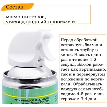 о благополучии своих насекомых и состоянии ульев. Аэрозоль эффективно
