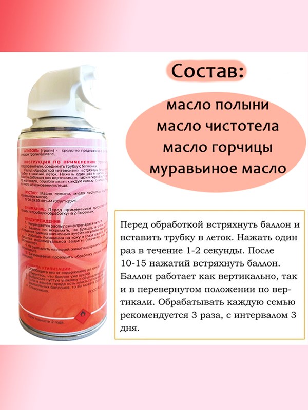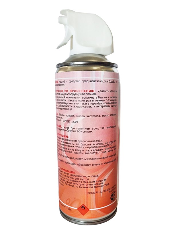 Аэрозоль для защиты пчел от клещей - эффективное средство в борьбе с тропилаелапсом, которое обеспечит надежную защиту вашего улья. Формула продукта создана специально для пчеловодов и направлена на уничтожение клещей, что значительно снижает риск заболеваний у пчел. Уникальная активная составляющая помогает предотвратить распространение вредителей и поддерживает здоровье колонии. Применение данного аэрозоля простое и удобное: достаточно обработать улей, чтобы обеспечить защиту пчел от опасных паразитов. Он проникает в труднодоступные места и обеспечивает длительный эффект, что делает его незаменимым помощником в практике пчеловодства. Эффективно действует против различных видов клещей, что позволяет сохранить здоровье вашей пасеки. Продукт подходит как для профилактических мероприятий, так и для лечения уже зараженных колоний. Используйте этот аэрозоль от Старого улья для поддержания жизнеспособности ваших пчел и повышения продуктивности ульев.