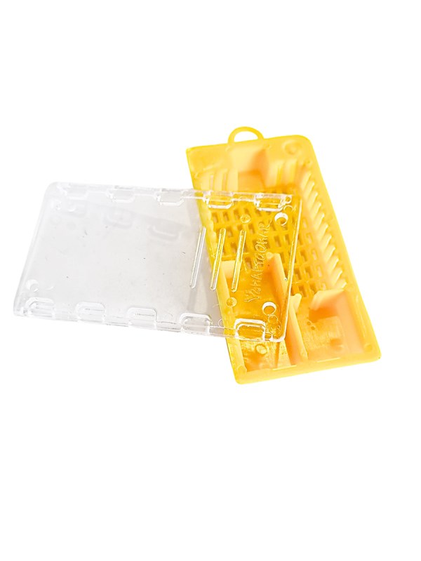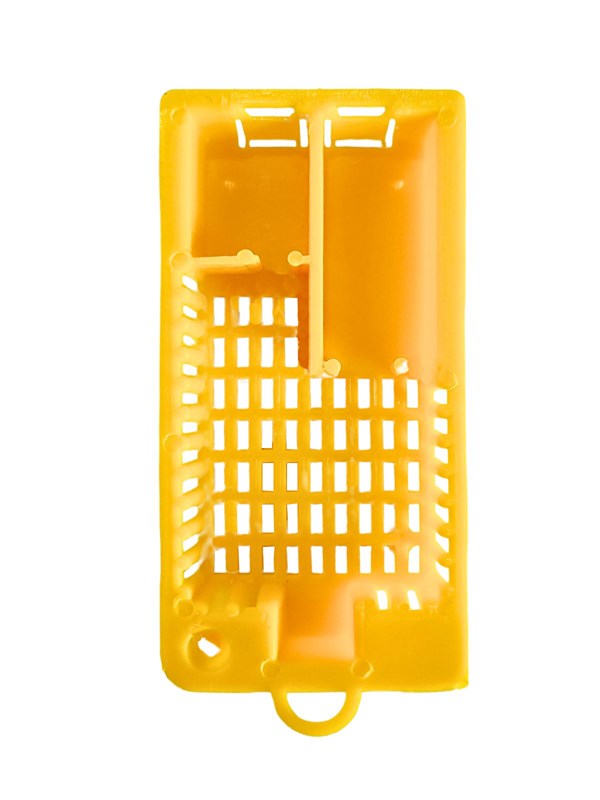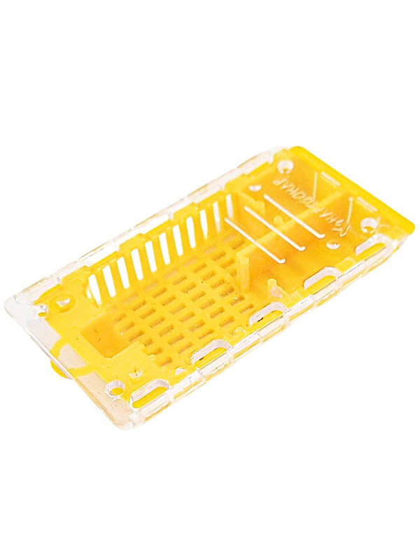 Данный вариант клеточки считается одной из удобных в работе с пчелиными матками. Изготовлена из высококачественного пластика. В ней есть место для корма пчел, что важно при пересылке на дальние расстояния.