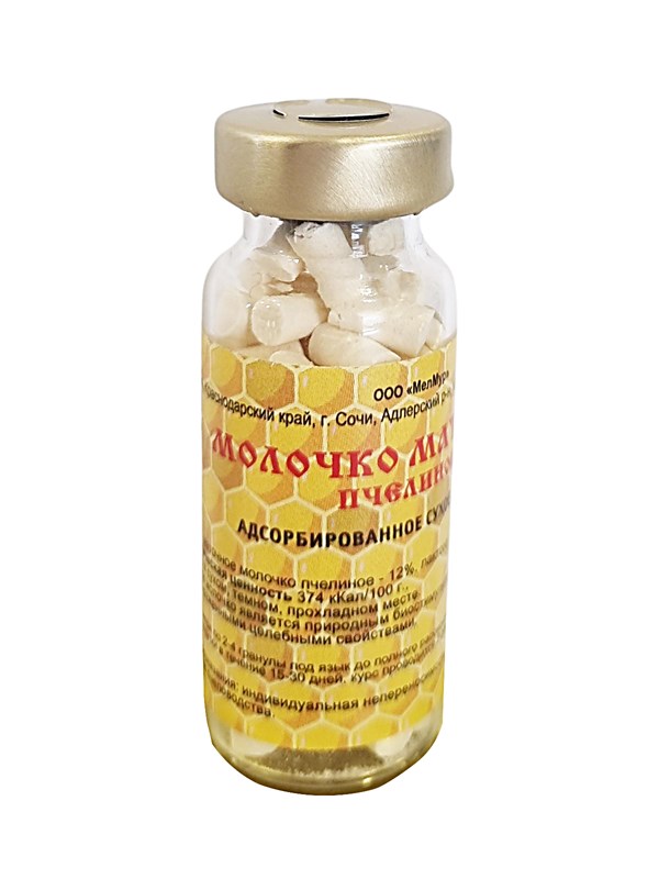 Маточное молочко - удивительный и феноменальный продукт пчеловодства. Оно способствует ослаблению нервного перенапряжения и физической усталости, улучшению сна, аппетита, памяти, трудоспособности, усиливает сопротивляемость инфекции, повышает общий жизненный тонус, улучшает самочувствие. Плюсы адсорбированного молочка маточного: