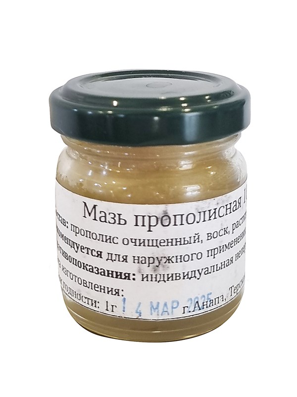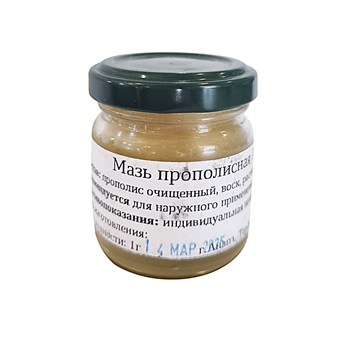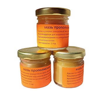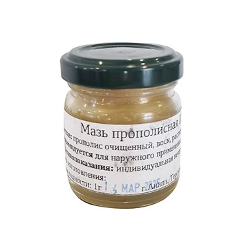 Мазь прополисная, 40 г. Состав: прополис, воск, растительное масло.