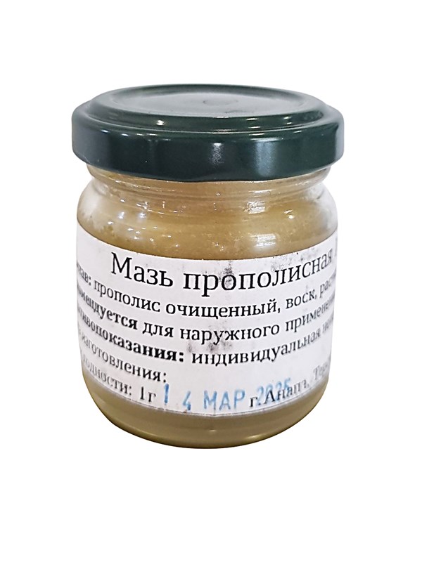 Побочные эффекты. Весьма редко могут отмечаться явления индивидуальной непереносимости к прополисной мази (проявляются обычно в виде зуда, покраснения кожи и сыпи на ней). В таких случаях лечение мазью необходимо прекратить.