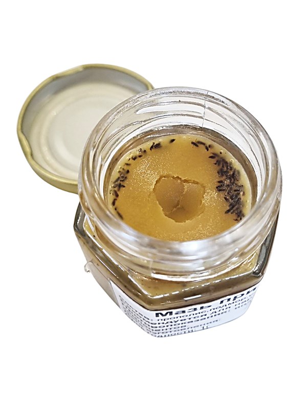 Состав: прополис, подмор, сабельник, растительное масло, воск.