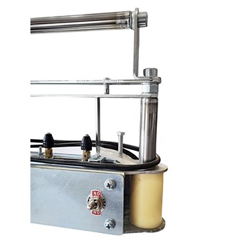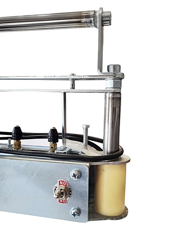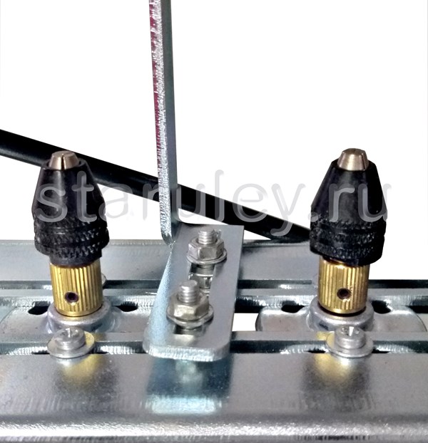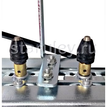 Станок сверлильный предназначен для сверления боковых планок всех типов ульевых рамок. Основной особенностью конструкции станка является безременная передача крутящего момента электродвигателей на сверлильный патрон, что позволяет регулировать расстояние между отверстиями.