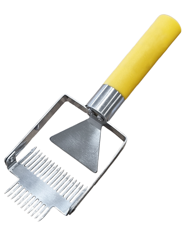 Суть работы вилки-культиватора в том, что глубина погружения зубцов регулируется направляющей лопаткой, и рука пчеловода при работе не находится в постоянном напряжении как с обычной вилкой.