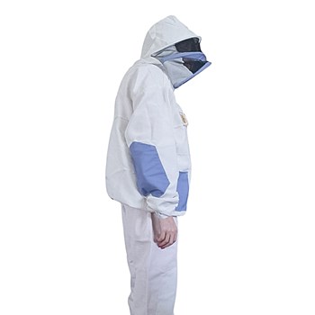 Костюм состоит из брюк на лямках, куртки и маски на молнии. Ткань двунитка. В манжетах рукавов и штанин есть резинки. На куртке один нагрудный карман на липучке и два кармана контрастной расцветки внизу, на брюках два накладных боковых кармана. Маска с мелкой сеткой обеспечивает хороший обзор, пристегивается к куртке с помощью молнии.