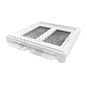 Имеет 2 летковых отверстия и специальный паз под перегородку для деления пополам.