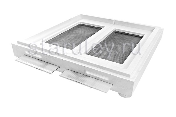 Поставляется в комплекте с сеткой из нержавеющего материала и двумя задвижками из поликарбоната