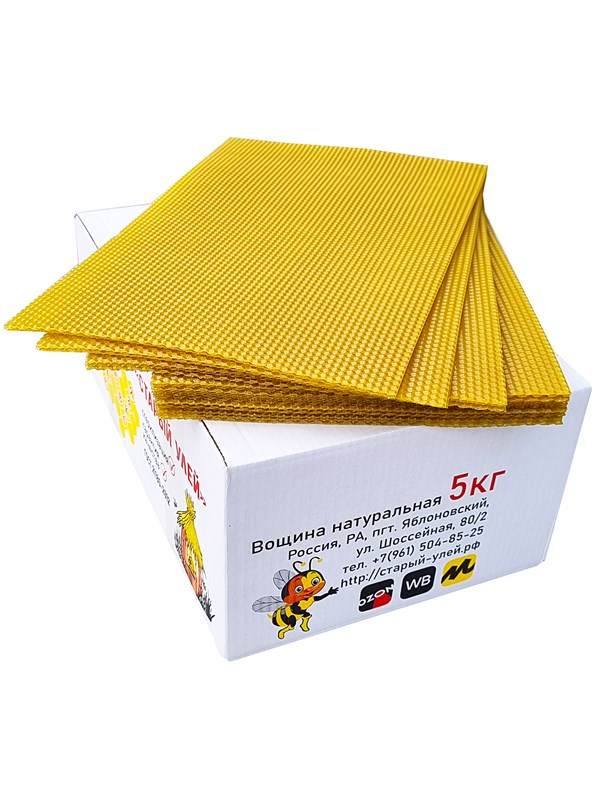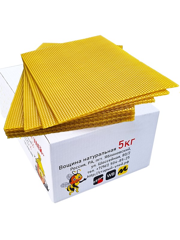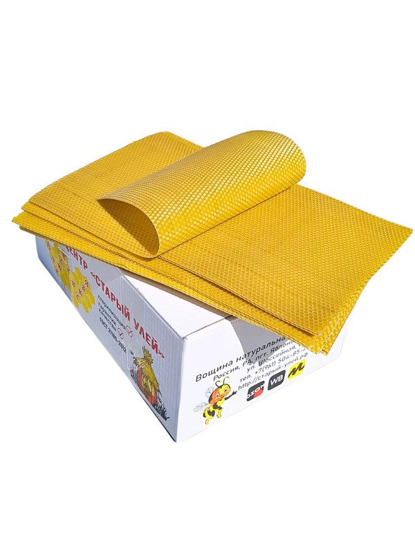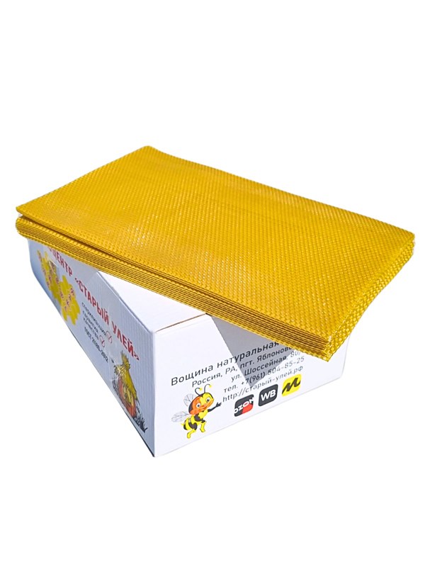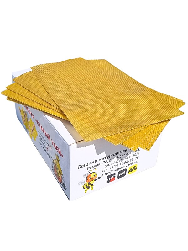 Вощина упакована в картонную упаковку. В упаковке содержится 63±2 листа.