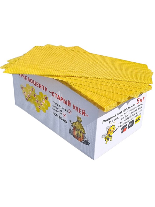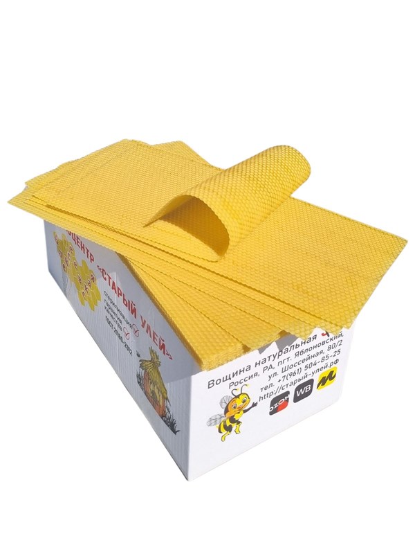 Вощина упакована в картонную упаковку. В упаковке содержится 85±1 листа.