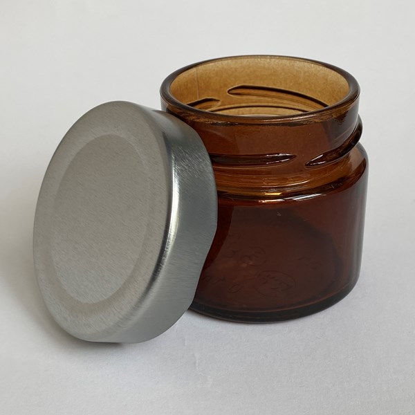 Баночка для свечи из темного стекла, 100 мл (крышка серебро)