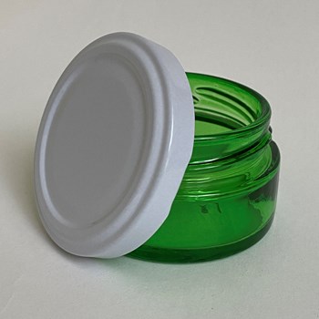 Баночка для свечи из зеленого стекла, 50 мл (белая крышка)