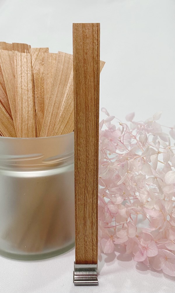 Фитиль из качественных пород дерева розовых сортов древесины, при правильном использовании хорошо горит, не искажает аромат и не окрашивает воск, что очень важно если свечи в стеклянном подсвечнике.