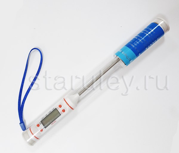 Термометр кулинарный необходим на кухне ни только для профессионального повара и для любительницы приготовить и для любой хозяйки. Термощуп кухонный полезен при изготовлении свечей для измерения температуры воска. А так же термометр электронный нужный предмет при приготовлении пищи и чтоб измерить температуру продуктов необходимых для готовки. Электронный термометр охватывает диапазон температур от -50 °С до + 300 °С. Кулинарный термощуп с точностью +-1 °С отличный помощник.