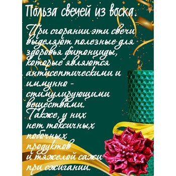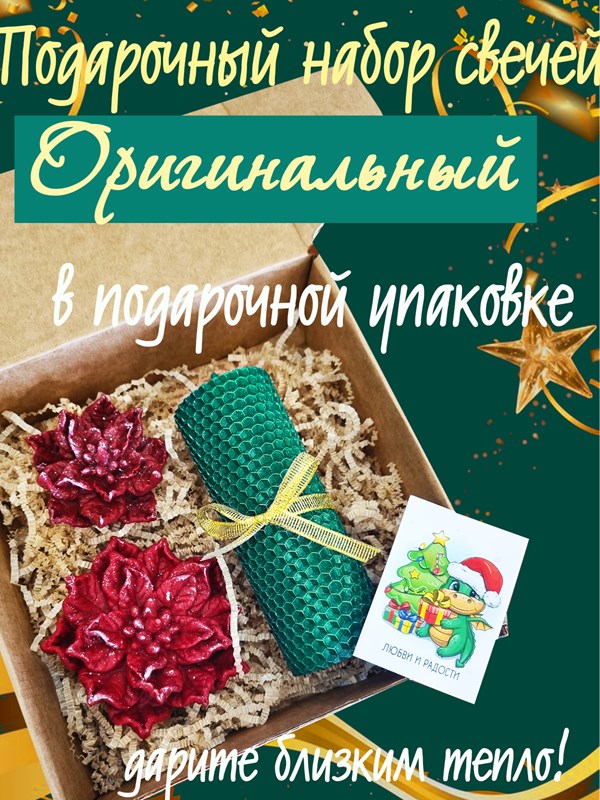 Пчелоцентр "Старый улей" в преддверии Нового года специально для Вас создал уникальный набор из натуральной цветной вощины. Подарочный набор создаст новогоднее настроение. Вы можете приобрести данный набор как для себя, так и в подарок близкому. Набор состоит из 3 уже готовых свечей, милой новогодней открытки и фирменной коробки. Желаем Вам счастья и успехов и поздравляем с наступающим Новым годом!