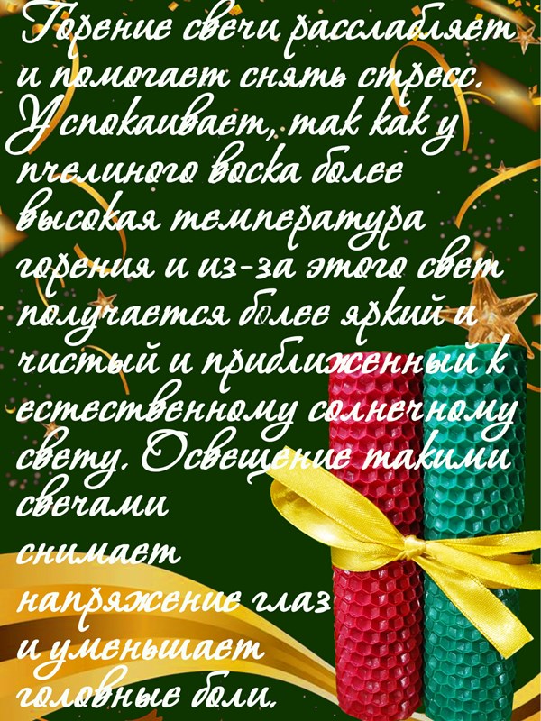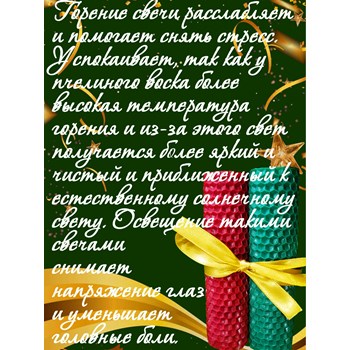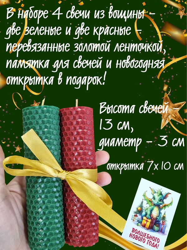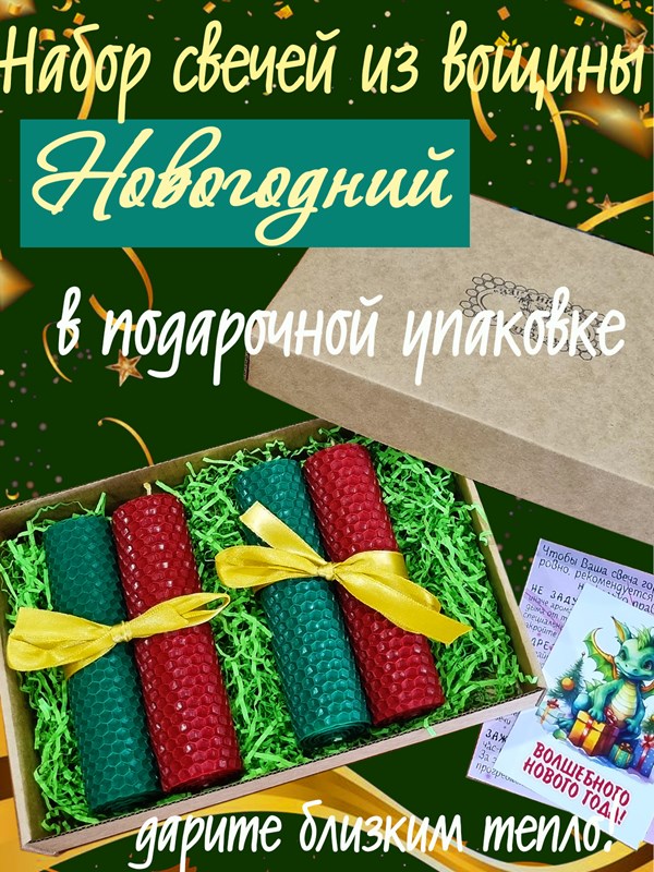Пчелоцентр "Старый улей" в преддверии Нового года специально для Вас создал уникальный набор из натуральной цветной вощины. Подарочный набор создаст новогоднее настроение. Вы можете приобрести данный набор как для себя, так и в подарок близкому. Набор состоит из 4 уже готовых свечей, милой новогодней открытки и фирменной коробки. Желаем Вам счастья и успехов и поздравляем с наступающим Новым годом!