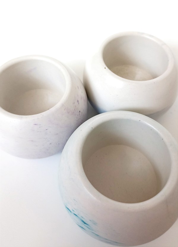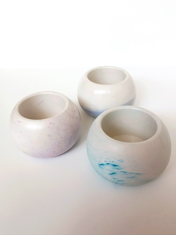 Подсвечник из гипса в форме шара.