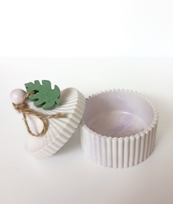 Декоративная рифлёная шкатулка с крышкой и мраморным рисунком.