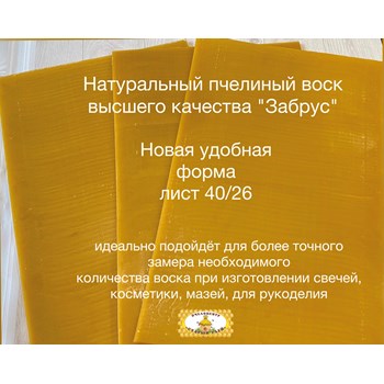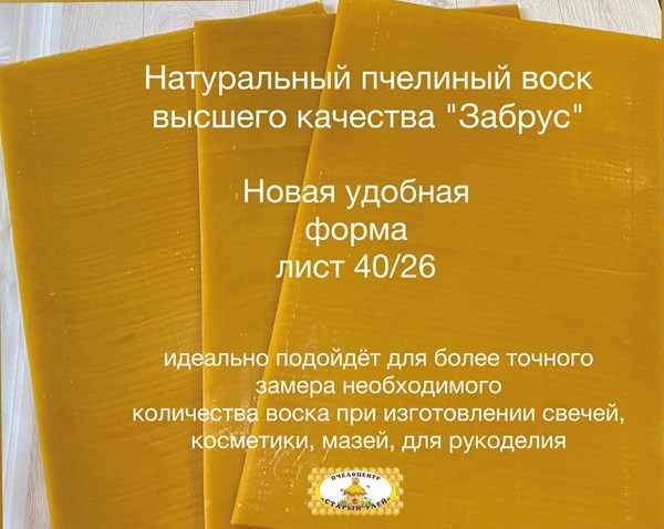 Состав: 100% натуральный пчелиный воск высшего качества "Забрус"