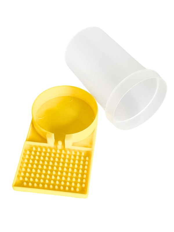 Герметичная поилка для пчел на 0,5 л с широким основанием и ребристой зоной выпойки. Выполнена из качественного пищевого пластика, простая и надежная конструкция гарантирует долговечность службы и использования.